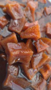 – Postupak je isti kao sa pečenkom, ali umesto bundeve stavila sam kolutove zelenog paradajza. Može i sa grožđem ili nekim drugim voćem. To ne prodajem, to samo od srca poklonim, jer ovo starinsko jelo nema cenu – ono je melem za dušu – kaže ona uz osmeh.